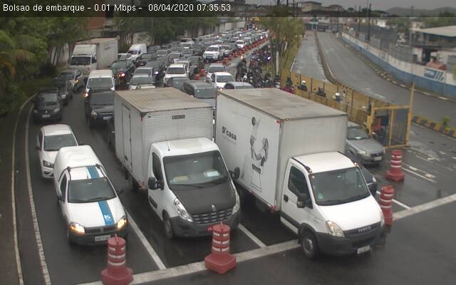 Nesta quarta-feira (8), a travessia Santos/Guarujá opera com quatro embarcações. O tempo de embarque é de 15 minutos de ambos os lados, vistos hoje, às 07h27.