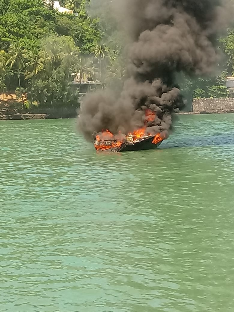 Uma lancha com nove pessoas pegou fogo na manhã desta terça-feira (25) na praia da Enseada, em Guarujá. Com o incêndio, oito pessoas ficaram feridas.