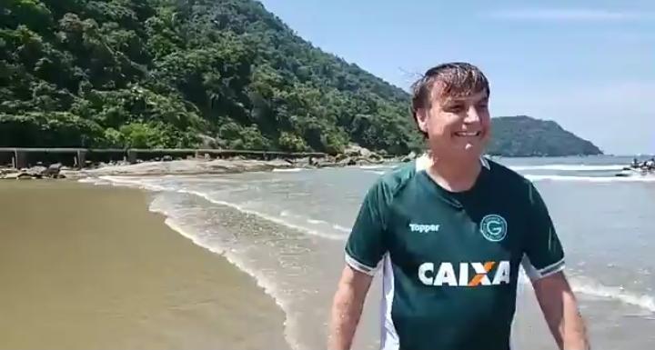 No final da manhã desta terça-feira (25), o presidente Jair Bolsonaro foi passear na Praia do Forte, em Praia Grande. Live nas suas mÃdias sociais mostraram ele saindo do mar v... Leia Mais