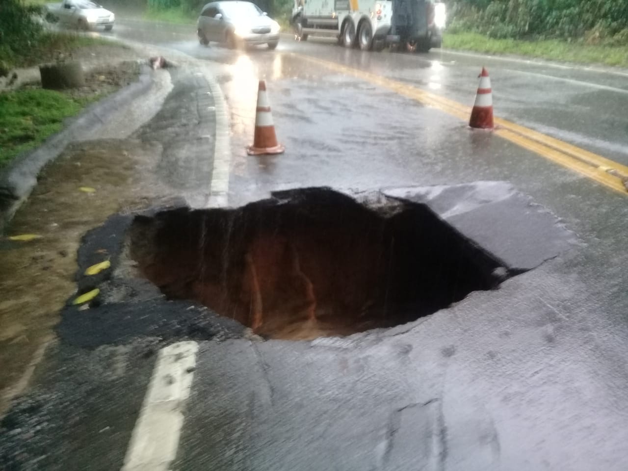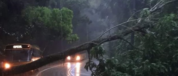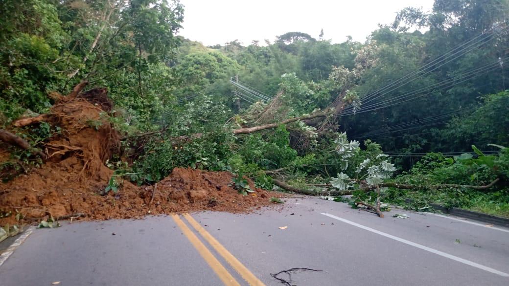 A queda de uma árvore, por volta das 08h30, devido às fortes chuvas, causou interdição total da Rodovia Manoel Hyppolito Rego, no km 147.