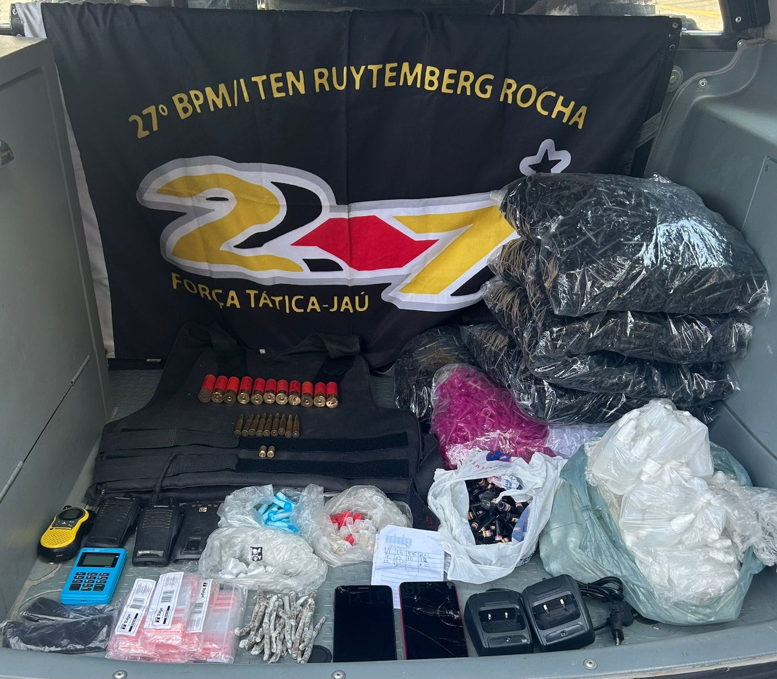 A área de mata era utilizada pelo crime organizado para esconder entorpecentes. No local, havia 32 quilos de entorpecentes entre maconha, crack, anfetamina e adrenalina.Â