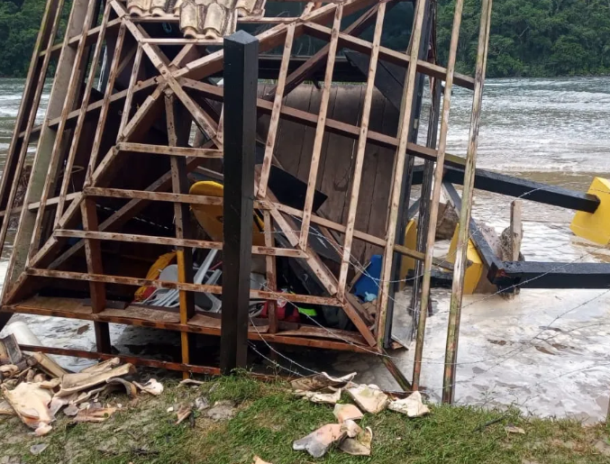 Em Bertioga, um posto de guarda – vidas, tombou com a ressaca. Somente um soldados estava trabalhando no local e não se feriu.