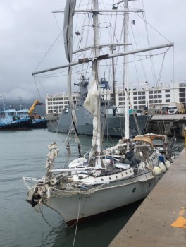 Embarcação à vela “Patchwork” atracada em São Sebastião – Foto: Divulgação / Marinha do Brasil (MB)