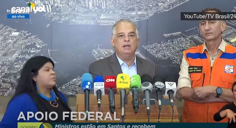 Os ministros Márcio França (Portos e Aeroportos), Waldez Góes (Integração e Desenvolvimento Regional) e Sonia Guajajara (Povos IndÃgenas) se reuniram nesta sexta-feira (24/2), com os prefeitos da região do litoral, na sede da Autoridade Portuária de Santos. O motivo dessa reunião era para atendimento de demandas dos municÃpios, em razão dos danos causados pelas chuvas no último feriado de Carnaval. O encontro teve inÃcio as 10h30 e ao meio dia foi feita coletiva para divulgar o que foi falado.