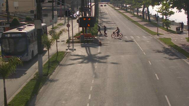 Nesta quinta-feira (30), a travessia Santos/Guarujá opera com sete embarcações. O tempo de embarque é de 15 minutos de ambos os lados, vistos hoje, às 08h47.