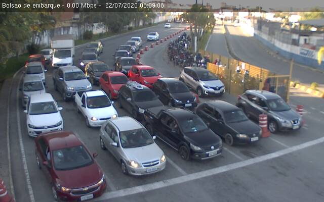 Nesta segunda-feira (22), a travessia Santos/Guarujá opera com sete embarcações. O tempo de embarque é de 15 minutos de ambos os lados, vistos hoje, às 08h17.