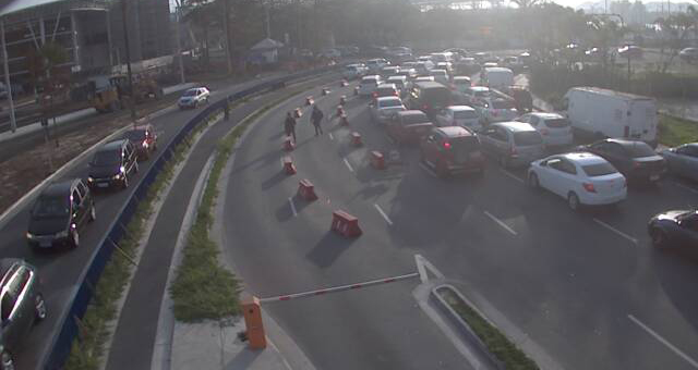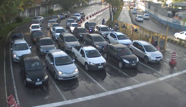 Nesta terça-feira (24), a travessia Santos/Guarujá opera com seis embarcações. O tempo de embarque é de 15 minutos de ambos os lados, vistos hoje, às 08h19.