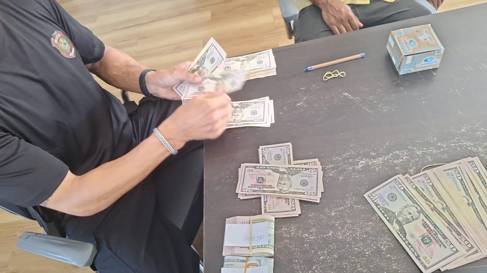 Foram apreendidos R$91 mil que a empresa teria pagado à fornecedora de papel, como entrada para aquisição de um novo lote de bobinas, as quais seriam utilizadas para uma nova remessa de droga.