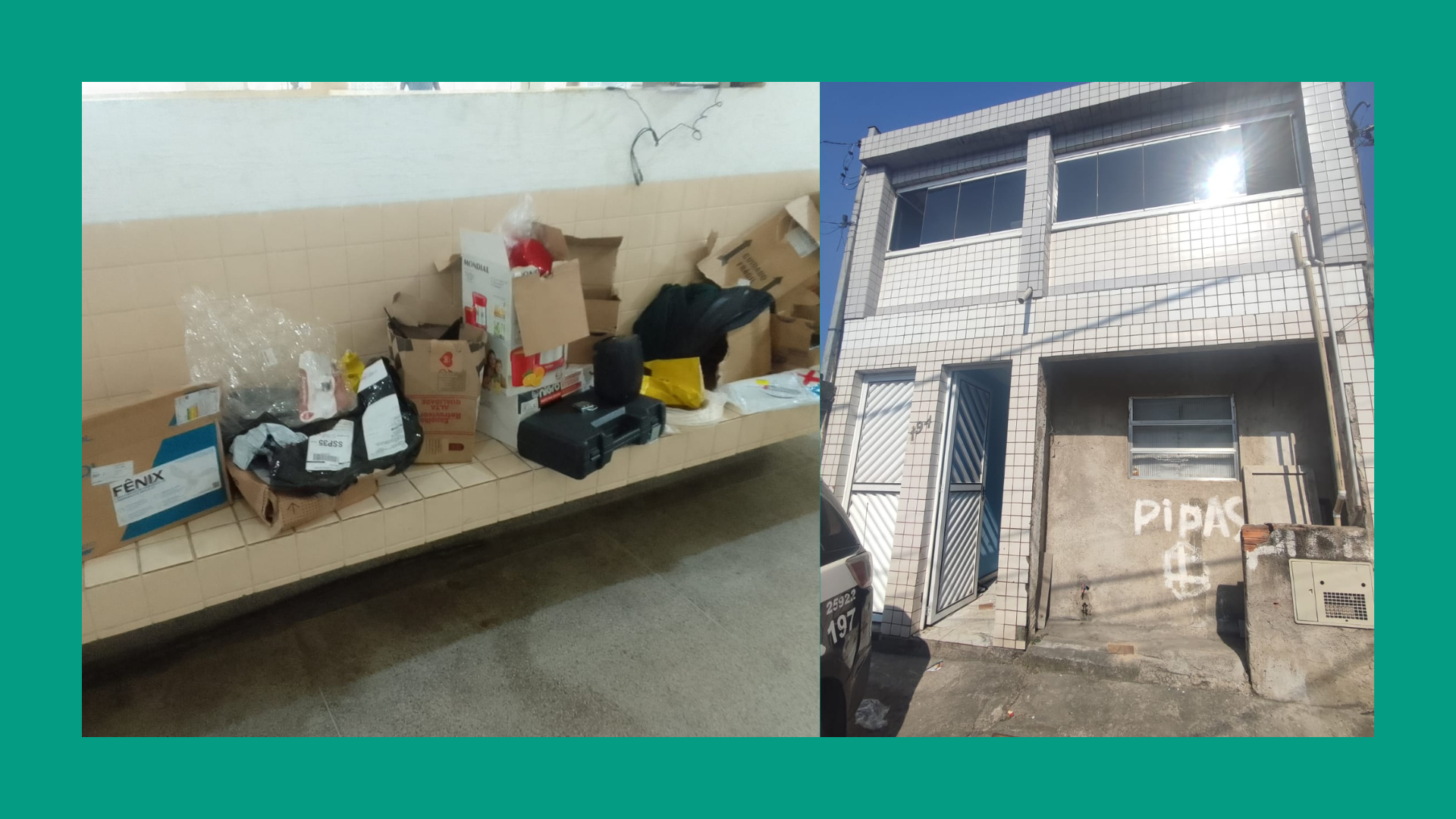 Segundo o Bo, os agentes foram acionados por volta de 13h, e se dirigiram ao imóvel indicado. Chegando lá, eles encontraram diversas caixas da transportadora embrulhadas em panos. O portão da residência estava aberto e quando os policiais entraram, se depararam com os quatro indivÃduos no local. Além das mercadorias, um simulacro de pistola foi apreendido. O caso foi registrado no 2° DP de São Vicente.