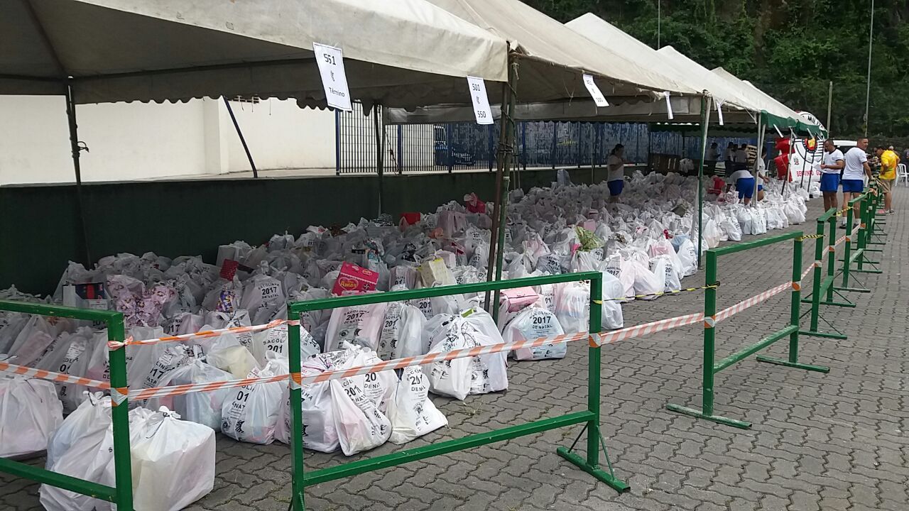 Aconteceu hoje na Arena Santos. Sucesso total. Entre crianças, paÃs, voluntários e todo o pessoal de apoio da PM . Presença 2.500 pessoas.