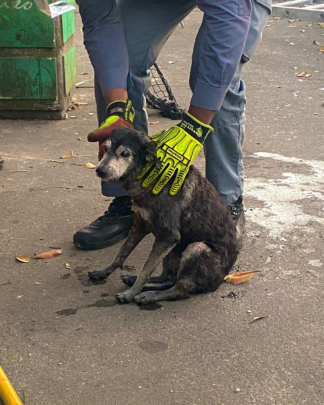 A cadelinha pertence a um posto de gasolina, que fica próximo ao local do ocorrido. Foi necessário o uso da escada para retirar o animal do canal. Nas imagens é possível ver o salvamento do animal, por um bombeiro.