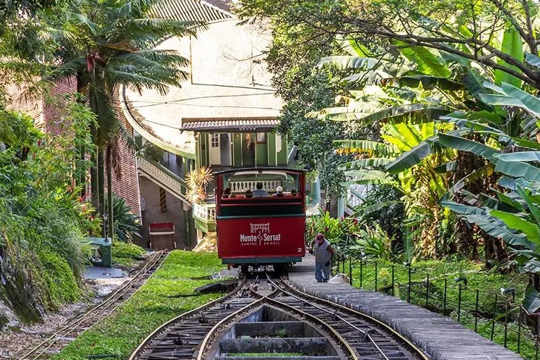 São quatro minutos de pura emoção, subindo de bondinho os 147 metros da encosta do Monte Serrat rumo ao topo, onde estão o antigo cassino e o Santuário de Nossa Senhora do Monte Serrat, padroeira de Santos, construído há mais de 400 anos. Você também pode subir por uma escadaria com 402 degraus e 14 nichos reproduzindo cenas da Via Sacra, inaugurados entre 1939 e 1941, e uma vista de 360 graus da cidade, de tirar o fôlego – é possível ver também parte dos municípios de São Vicente, Cubatão e Guarujá.