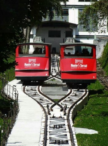 Subir pela encosta de bondinho até o topo do monte é uma atração à parte, única no país. Projeto alemão, o sistema funciona com dois bondes em movimento sincronizado e um desvio no centro. Cada veículo tem capacidade para 45 passageiros, que percorrem em quatro minutos a linha, com 242 metros de extensão. O trabalho de sustentação é feito por um cabo de aço de uma e meia polegada de diâmetro, com resistência para 90 toneladas.