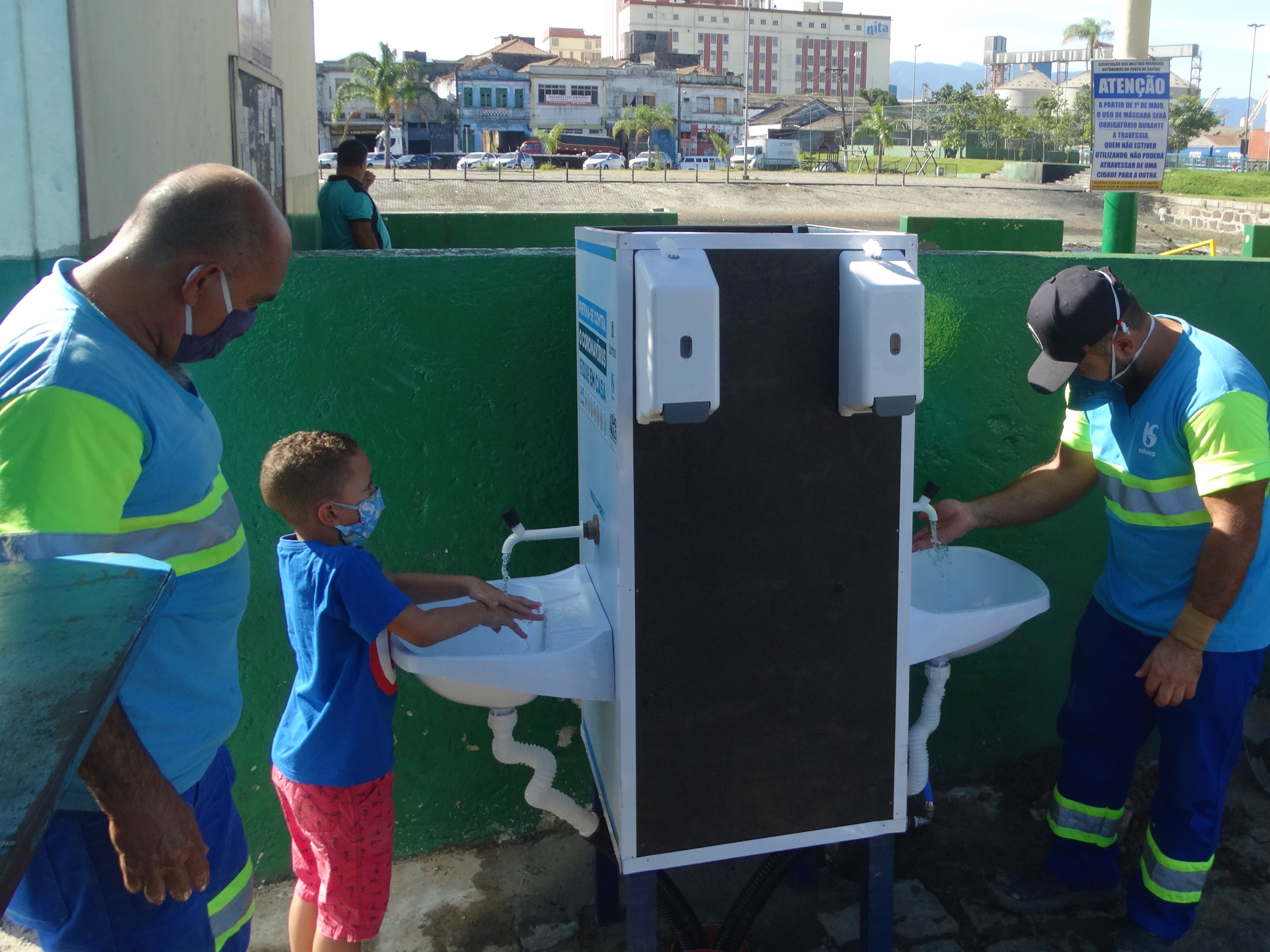 A Sabesp instalou um módulo com dois lavatórios e dispositivos para sabão ou álcool em gel em frente à travessia de catraias de Santos para o distrito de Vicente de Carvalh... Leia Mais