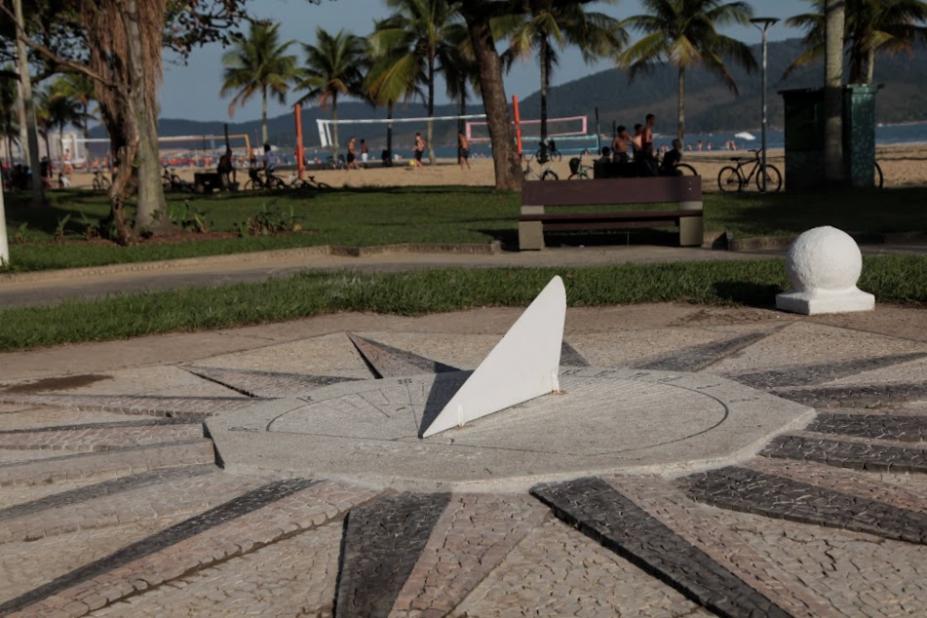 Um dos marcos da orla de Santos, o relógio de sol no jardim da praia do Boqueirão acaba de passar por revitalização.