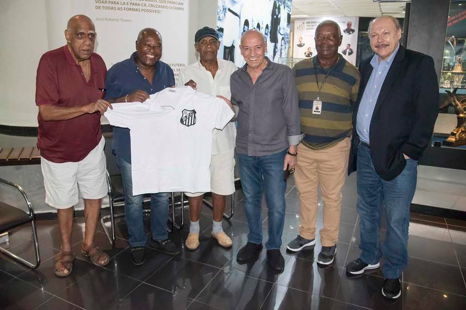 Novo comandante do Santos posa ao lado dos ídolos Mengálvio, Edu, Dorval e Lima