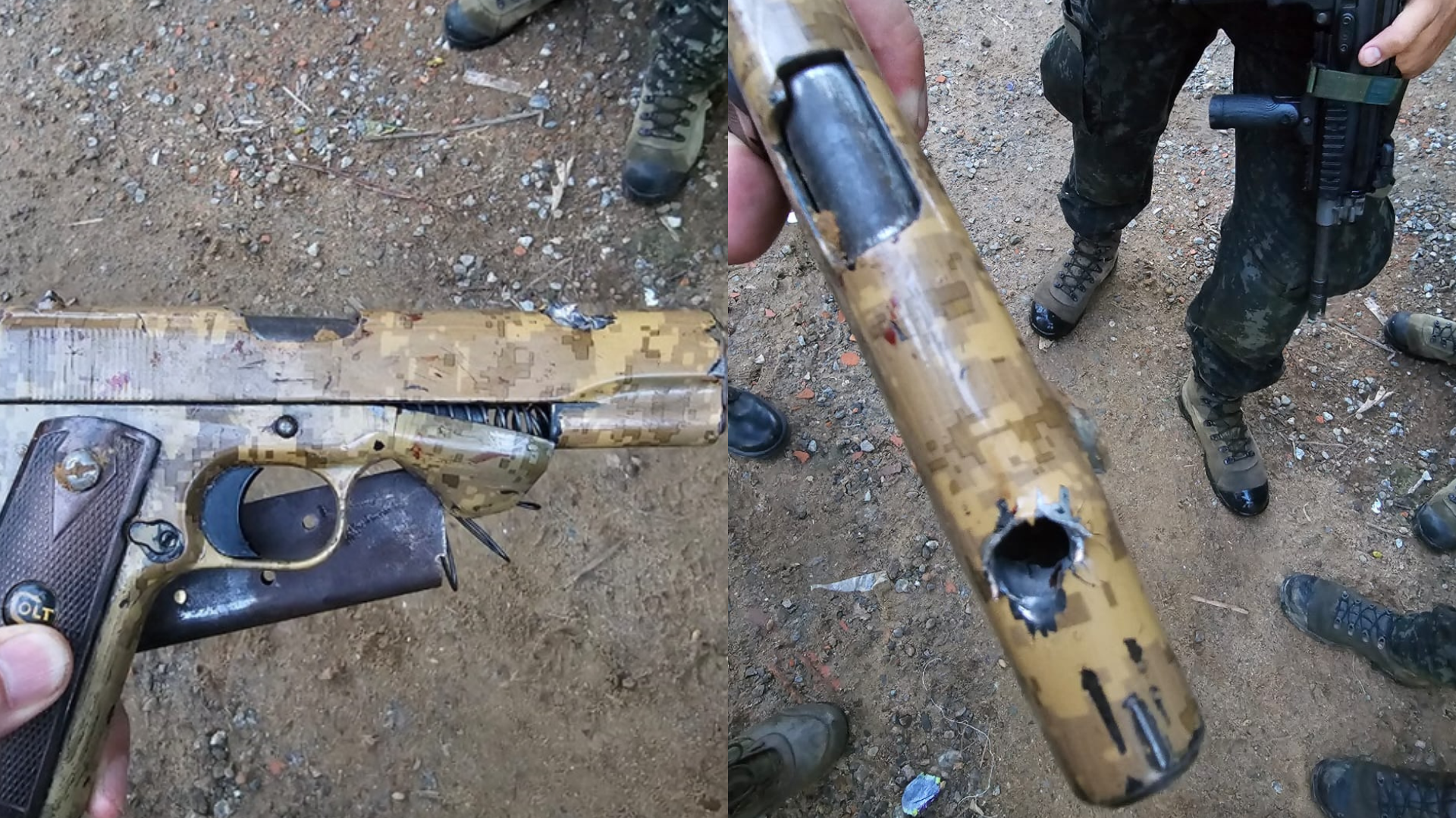 A equipe prosseguiu nas buscas pelos suspeitos e conseguiu localizar uma das armas, calibre .45, usada para atacar os policiais. O tiro disparado pelo atirador do COE havia acertado a pistola no cano, inutilizando o armamento.