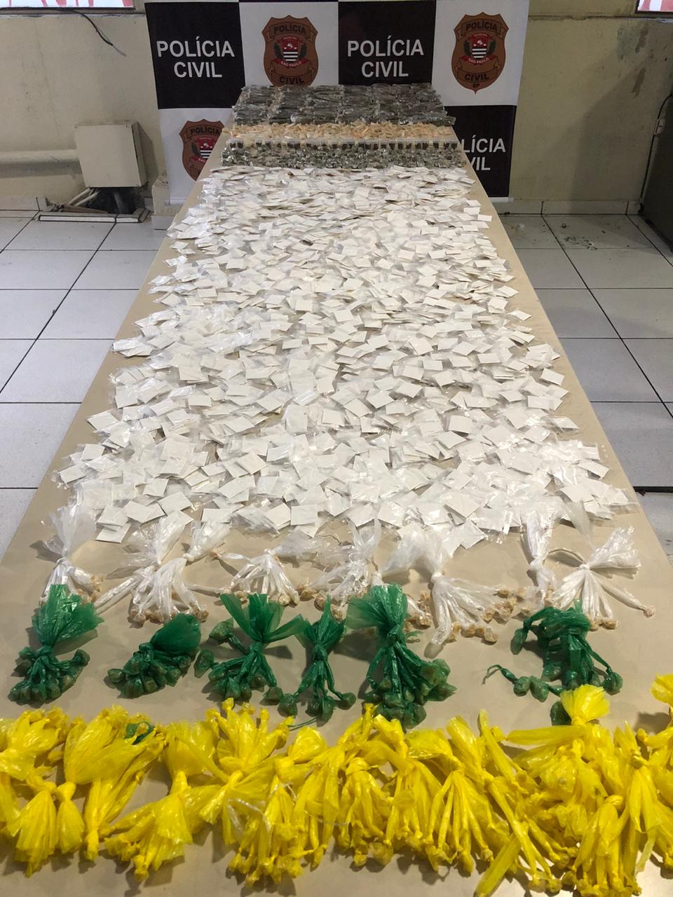 Foram encontrado 2.087 porções de cocaína, 319 pedras de crack e 420 porções de maconha