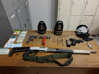 A apreensão foi realizada através de denúncia anônima apontando que um indivíduo guardava armas roubadas em sua residência
