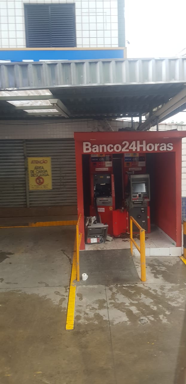 Um caixa eletrônico 24 horas dentro de um supermercado no bairro São Jorge, na Zona Noroeste, em Santos, foi arrombado no início desta manhã.