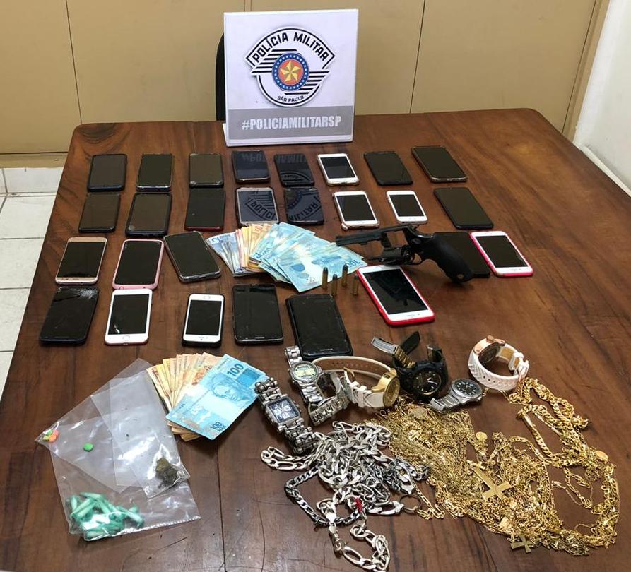 Entre os objetos encontrados estava uma arma calibre 38