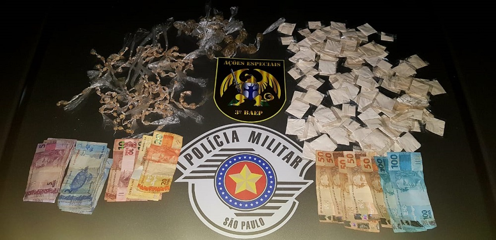 PMs prenderam um homem com 707 porções de cocaína, no Jardim Nipon, em Mairiporã.