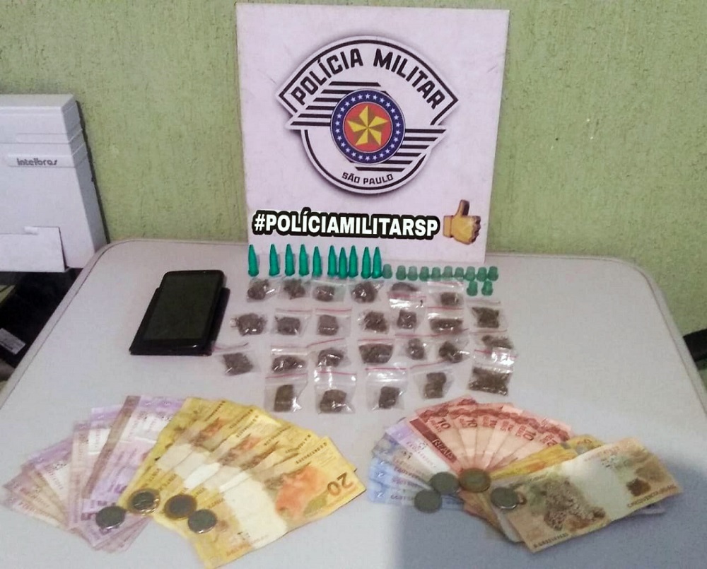 Policiais militares prenderam um homem, de 33 anos, por tráfico de drogas na Alameda Marisco, em Caraguatatuba.