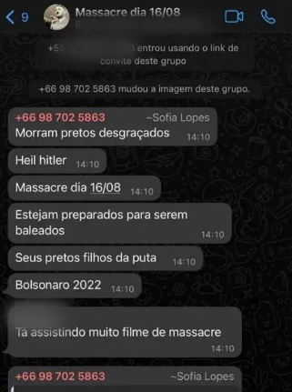 Os policiais empreenderam diligências conseguindo identificar os indivíduos responsáveis pelas mensagens. Eles foram localizados e conduzidos à delegacia para as providências de Polícia Judiciária. Dois aparelhos telefônicos foram apreendidos para perícia e serão objetos de análise das futuras investigações.